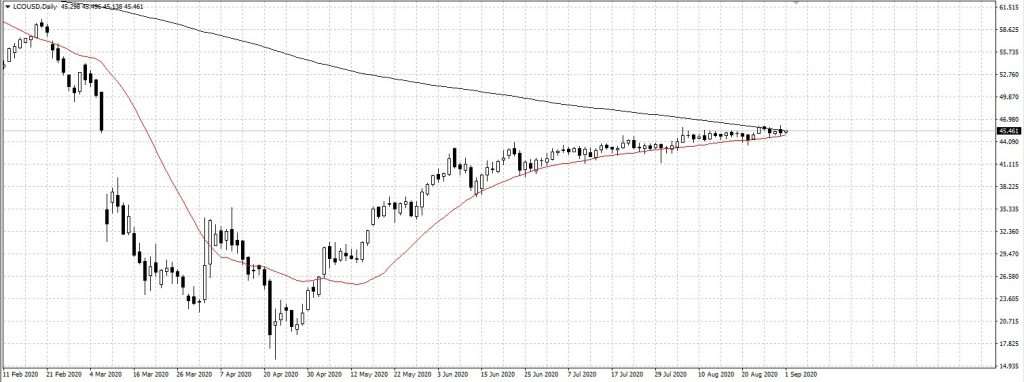 Yükselen takoz formasyonu içindeki fiyatlamalarına devam eden emtiaya günlük grafikte bakacak olursak 22 günlük ortalamasının destek, 200 günlük ortalamasının ise direnç olduğunu görmekteyiz. Bu iki ortalamanın gün geçtikçe birbirine yaklaşmasından kaynaklı olarak herhangi bir yöne olan kırılımda sert hareketlilikler izleyebiliriz. Bu kırılımın yukarı yönlü olması halinde $47.80 ve $48.90 bölgeleri hedefimizde olacaktır. Bu bölgelerinde aşılması durumunda psikolojik $50.00 bölgesini takip edeceğiz. Burayı ilk kez test etmesinden kaynaklı olarak bu bölgeye gelindiğinde bir miktar geri çekilmeler izleyebiliriz. Fiyatlamaların 22 günlük ortalamanın altına geçmesi durumunda $44.70 ve $43.50 bölgelerini destek olarak takip edeceğiz.