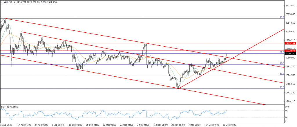 Ons altın fiyatlarının alçalan trend direnci konumunda bulunan $1905 seviyesini yukarı yönde aşması sonucu yükseliş hareketinin sertleştiğini ve bu sayede $1920 seviyesine ulaşıldığını izlemekteyiz. Bu noktada $1930 direnci yükselişin devamı adına dikkatle takip edilecek seviye konumunda bulunuyor. Şayet bu direncin aşılabilmesi durumunda altın fiyatlarında yükselişin devam edebileceğini ve $1965 seviyesi ile $1990 direncinin potaya girebileceğini not edelim. Buna karşılık $1900 seviyesi artık destek olarak izlenecektir. Geri çekilmenin oluşması adına bu seviyenin altında fiyatlamaları takip etmemiz gerekiyor. Böyle bir durumda $1875 ve $1848 destekleri yeniden ön plana çıkabilir.
