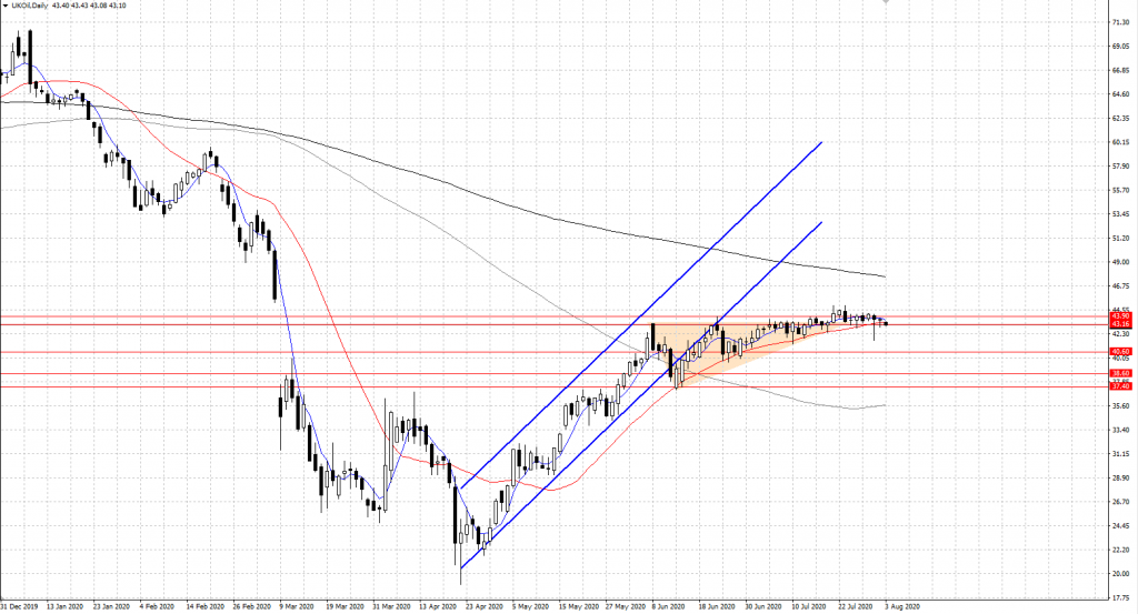 Geçtiğimiz hafta açıklanan Ham Petrol Stokları verisinin beklentinin çok altında gelmesiyle arz kısmındaki düşüşten dolayı emtiada yukarı yönlü hareketliliğin devam ettiğini görmekteyiz. Yükselen üçgen formasyonun üst seviyesi aşarak bu olası formasyonu tetikleyen emtianın yukarı yönlü hareketliliklerinde $45.00 bölgesinin kritik önem arz ettiğini söyleyebiliriz. Bu bölgenin üzerine geçebilmesi halinde formasyon hedefine doğru yükseliş ataklarının devam edebileceğini söyleyebiliriz. Olası geri çekilmelerde $44.00 ve $42.55 bölgelerini destek olarak takip etmeye devam edeceğiz. Bu destek bölgelerinin altına sarkmalar olması halinde emtiadaki pozitif görünümün bozulabileceğini söyleyebiliriz Bu durumda geri çekilmelerin derinleşebileceğini düşünebiliriz.