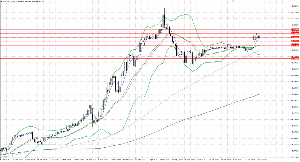 Türkiye’ye yaptırım öngören tasarının Senato’dan da geçmesiyle uzun süredir yatay seyir izleyen paritede 7.0000 bölgesine doğru ani bir yükseliş atağı izledik. İlk etapta bu bölgede kalıcılık sağlayamayıp tekrar eski seviyelerine gelen paritede geçtiğimiz işlem gününde alım iştahının yüksek olduğunu gözlemledik. Bollinger bandının üst çizgisine yapışan fiyatlamaların hızlı bir şekilde direnç bölgelerini aşarak 7.0000 seviyesinin hemen altında kalıcılı olmaya çalıştığını söyleyebiliriz. Alıcıların fiyatı bu seviyelerde tutabilmesi halinde yukarı atakların devamını izleyebiliriz. 7.000 bölgesinin aşılması halinde 7.0400 ve 7.1100 bölgeleri kritik direnç seviyelerimiz olacaktır. TL varlıklarına bir talep gelmesi halinde 6.9200 ve uzun süredir aşılamayan 6.8750 bölgesine kadar geri çekilmeler izleyebiliriz.