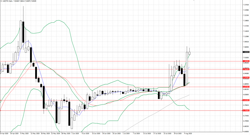 Geçtiğimiz günlerde Türkiye’ye yaptırım öngören tasarının Senato’dan da geçmesiyle yükseliş atakları izlediğimiz paritenin kritik 7.0000 bölgesinde direnç ile karşılaşıp gevşediğini görmekteyiz. Geçtiğimiz gün TCMB’nin hamleleri ile TL varlıklarına olan talebin arttığını görmekteyiz. Londra borsasındaki swap oranlarının yükselmesiyle TL sıkıntısı çeken yabancı yatırımcının piyasadaki TL’ye olan ilgisinin arttığını söyleyebiliriz.TL lehine hareketliliğin bollinger orta çizgisinden destek alarak bozulmasıyla psikolojik 7.0000 seviyesinin üzerinde fiyatlamalar izlemekteyiz. Yükselişlerde 7.0400 – 7.1100 ve 7.1500 bölgelerini takip edeceğiz. Olası düşüşlerde 7.000 – 6.9600 destek bölgelerini izleyeceğiz