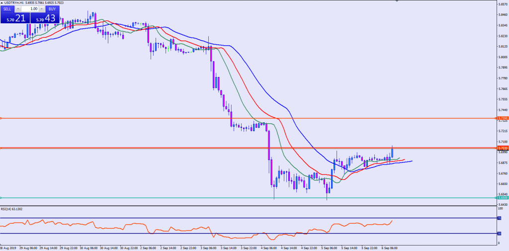 Bir süredir pozitif seyir izleyen TL varlıklarının, dün gelen ADP verisi ve TCMB’nin Brüt Döviz Rezervleri’nin 1 Milyar 30 milyon dolar azaldığı gözlemlendi açıklamasıyla, yukarı yönlü ataklar yapan paritede alıcılarla satıcıların 5.6900 seviyesinde bir güç hakimiyeti rekabetinde olduğunu gözlemlemekteyiz. 12 Eylül’de yapılacak PPK toplantısından gelebilecek bir faiz indirimi algısı da bu yükselişi desteklemektedir. Yurt içi dinamiklerle takip edeceğimiz parite için yükseliş temposunun devamı halinde sırasıyla 5.7030 ve 5.7350 seviyelerini izleyeceğiz. Olası geri çekilmelerde 5.6500 seviyesinin destek olmasını beklemekteyiz. Bu seviye altına sarkması halinde 5.6000 lara kadar geri çekilmenin devam edebileceğini düşünüyoruz.