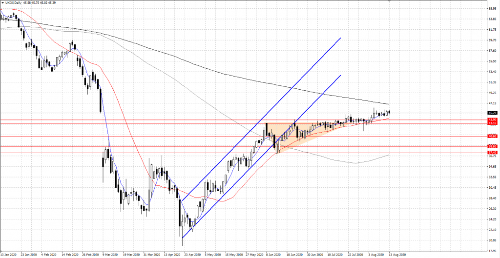 Emtiada yatay bir seyir izlesek te kademeli olarak yukarı yönlü bir hareketlilik görmekteyiz. Genel olarak $45.00 üzerinde kalındığı sürece yükselen üçgenin kırılımından kaynaklı olarak pozitif görünümün devam edebileceğini söyleyebiliriz. 200 günlük ortalamaya denk gelen $47.15 bölgesinin aşılması halinde alıcıların iştahının artabileceğini söyleyebiliriz. Bu senaryonun gerçekleşmesi durumunda formasyon hedefi olan $50.00 bölgesine doğru bir yükseliş temposu izleyebiliriz. Olası geri çekilmelerde psikolojik $45.00 bölgesinin kritik önem arz ettiğini söyleyerek bu seviyenin altına geçilmesi durumunda $44.00 ve $43.00 seviyelerinin fiyatlamalara destek olabileceğini söyleyebiliriz.