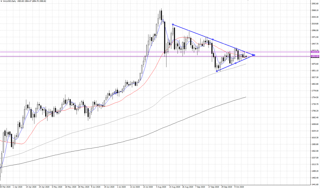 Daralan üçgen içerisinde fiyatlanmaların devam ettiğini gördüğümüz emtiada formasyon oluşumunun sonlarına doğru gelindiğini görmekteyiz. Bu formasyonun yukarı yönlü hacimli bir şekilde kırılması halinde alıcıların iştah seviyelerindeki artışın etkisiyle emtiada yeni tarihi zirve fiyatlamalarına doğru kademeli yükselişler izleyebiliriz. Bu olası durumda $1918 ve $1935 direnç bölgeleri gündemimizde olacaktır. Bu bölgelerin üzerinde kalıcılık sağlanması halinde yukarı yönlü hareketliliklerde momentum kazanımı görebiliriz. Küresel risk iştahının artması durumunda genellikle sermaye çıkışlarının yaşanması beklenen emtiada $1875 ve $1850 destek bölgeleri takibimizde olacaktır. Gün içinde küresel unsurlardan gelebilecek haber akışlarının fiyatlamalar açısından önemli olduğunu söyleyebiliriz.