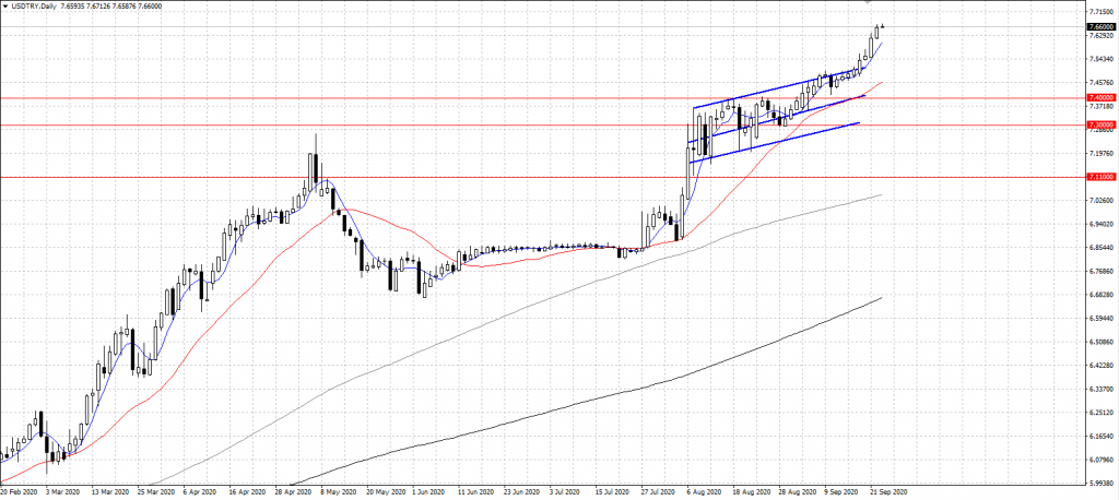 TL varlıklarındaki değer kayıplarının devam ettiğini gördüğümüz pariteye baktığımzda tarihi zirve fiyatlamalar görmekteyiz. 7.6600 direnç bölgesine kadar yükselişler gördüğümüz kurda alıcıların iştahlarının devam etmesi durumunda 7.7000 direnç bölgesi kritik önem arz edecektir. Bu bölgenin aşılması halinde sırasıyla 7.77500 ve 7.8000 direnç bölgelerini takip edeceğiz. Olası gevşemelerde 7.6000 destek bölgesinin altında kalıcılık sağlanması halinde kurda kısa vadede tansiyonun düşebileceğini söyleyebiliriz. Bu olası senaryoda 7.5000 destek bölgesine doğru gevşemeler izleyebiliriz. Gün içinde siyasi ve jeopolitik unsurlardan gelecek haber akışlarının fiyatlamalarda oynaklığa neden olabileceğini söyleyebiliriz.
