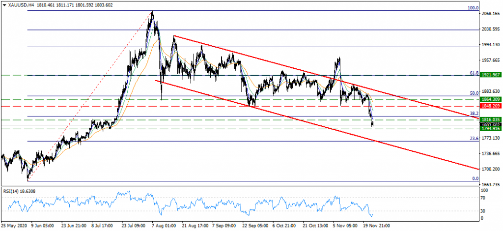 Ons altında baskı devam ediyor. Özellikle $1848 desteğinin kırılması sonrası geri çekilmenin hız kazandığını ve bu sayede $1800 seviyesinin hemen üzerinde işlemlerin oluştuğunu takip ediyoruz. Mevcut gerilemenin devamı noktasında artık $1795 desteği takip ettiğimiz ilk seviye konumunda bulunuyor. Bu seviyenin aşağı yönde geçilmesi ile satış baskısının devam edebileceğini ve bu sayede alçalan kanal formasyonu alt bandı konumunda bulunan $1763 ile $1746 desteklerinin potaya girebileceğini not edelim. Yukarı yönde fiyatlamaların oluşması durumunda ise $1815 ve $1825 dirençlerini takip edeceğiz. Özellikle $1825 direncinin aşılmasını sağlayacak fiyatlamalarda $1848 seviyesine doğru atakların oluşma ihtimalinin belireceğini söyleyebiliriz.