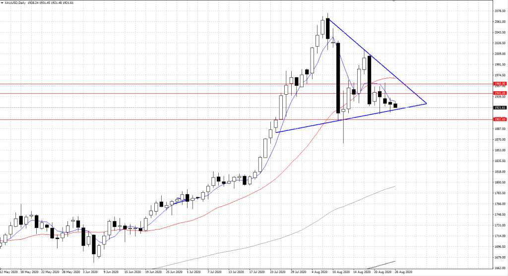 ABD ve Çin üst düzey ticaret heyetlerinin görüşmelere başlamasıyla piyasadaki risk iştahının arttığını ve güvenli liman olan emtiadan çıkışların yaşandığını gözlemlemekteyiz. Rusya tarafından gelen aşı haberlerininde bu düşüşü desteklediğini söyleyebiliriz. Üçgen formasyonu içerisinde olan emtiada formasyonun alt bölgesinde fiyatlamalar olduğunu görmekteyiz. Bu üçgenin aşağı doğru kırılması ve günlük kapanışların olması durumunda satıcılı seyrin ivme kazanabileceğini söyleyebiliriz. Bu durumda $1902 ve $1885 destek bölgeleri takibimizde olacaktır. Alıcıların tekrar güç kazanması halinde ise sırasıyla $1945 – $1960 ve kritik $2000 bölgeleri gündemimizde olacaktır. Bu direnç bölgelerin aşılması durumunda emtiadaki rallinin devamını izleyebiliriz.