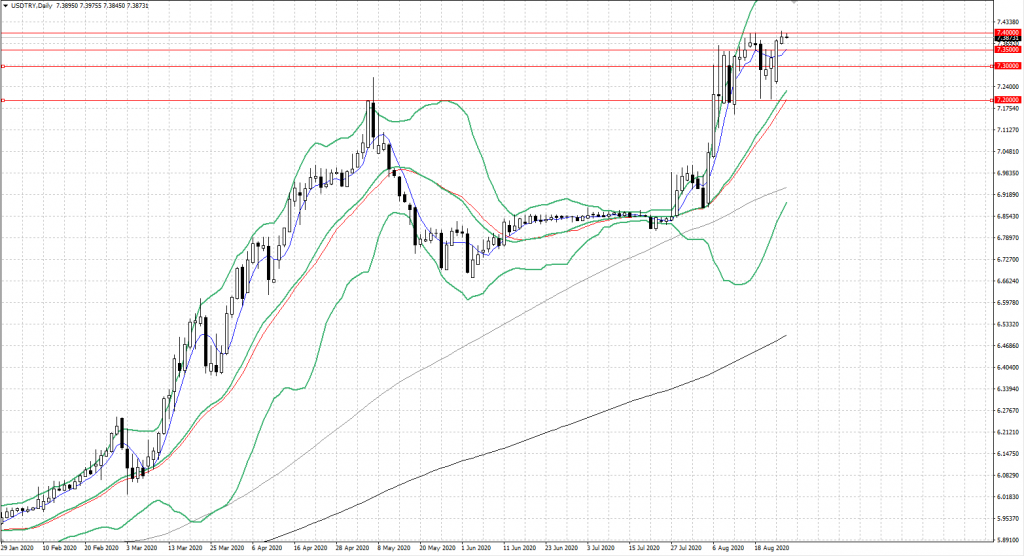 Geçtiğimiz hafta Cumhurbaşkanı Recep Tayyip Erdoğan’ın verdiği doğalgaz haberin sonra parite anlık olarak düşüşler izlesek de yeni hafta itibarıyla gerek Fitch tarafından verilen Türkiye’nin notu ve Türkiye-Yunanistan arasındaki NAVTEX geriliminin etkisiyle kur tarafındaki yükseliş ataklarının tekrar yaşandığını görmekteyiz. 7.4000 bölgesinin fiyatlamalara geçtiğimiz yükselişlerde direnç gösterdiğini ve bu sebeple kurdaki yükseliş iştahının derinleşebilmesi için bu seviyeyi dikkatle takip etmemiz gerektiğini söyleyebiliriz. Olası düzeltmelerde 7.3500 ve 7.3000 bölgeleri destek olarak karşımıza çıkmaktadır. Kur tarafındaki alış baskısının azalması için 7.2000 seviyesinin altında fiyatlamalar arayacağız.