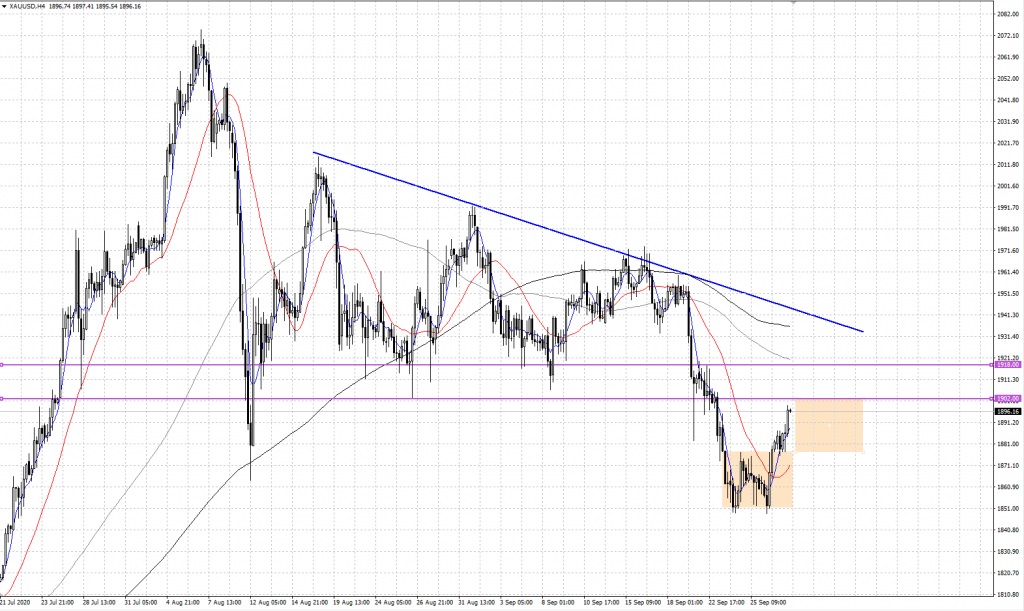 Dolar endeksindeki gevşeme ve ABD seçimleri öncesinde ABD iç siyasetindeki karışıklıktan dolayı güvenli liman talebini karşılayan Altın için alıcılı bir tempoda olduğumuzu söyleyebiliriz. 4 saatlik grafiğe baktığımızda 5 periyotlu H.O’sının 22 periyotluk H.O’yı aşağıdan yukarıya keserek bu temponun desteklendiğini görmekteyiz. Grafikte belirttiğimiz üzere emtiada geçtiğimiz hafta itibarıyla olası bir çift dip formasyonunun fiyatlanması durumunda teknik olarak formasyon boyunca görülen dalganın formasyon tetiklenmesinden sonra aynı yöne doğru devam etmesi beklenmektedir. Bu seviye $1902 direnç bölgesi olarak karşımıza çıkmaktadır. Bu bölgenin aşılması durumunda $1918 direnç bölgesini izleyeceğiz. Satıcıların fiyatlamaları baskılaması halinde $1902 ve $1875 destek bölgeleri takibimizde olacaktır.