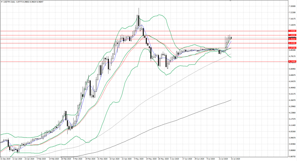 Türkiye’ye yaptırım öngören tasarının Senato’dan da geçmesiyle uzun süredir yatay seyir izleyen paritede 7.0000 bölgesine doğru ani bir yükseliş atağı izledik. İlk etapta bu bölgede kalıcılık sağlayamayıp tekrar eski seviyelerine gelen paritede geçtiğimiz işlem gününde alım iştahının yüksek olduğunu gözlemledik. Bollinger bandının üst çizgisine yapışan fiyatlamaların hızlı bir şekilde direnç bölgelerini aşarak 7.0000 seviyesinin hemen altında kalıcılı olmaya çalıştığını söyleyebiliriz. Alıcıların fiyatı bu seviyelerde tutabilmesi halinde yukarı atakların devamını izleyebiliriz. 7.000 bölgesinin aşılması halinde 7.0400 ve 7.1100 bölgeleri kritik direnç seviyelerimiz olacaktır. TL varlıklarına bir talep gelmesi halinde 6.9200 ve uzun süredir aşılamayan 6.8750 bölgesine kadar geri çekilmeler izleyebiliriz.