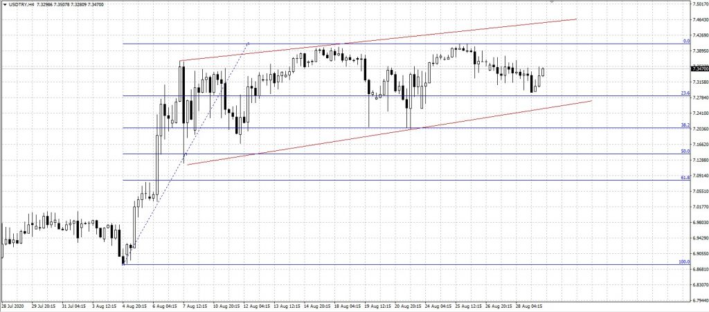USDTRY paritesinde jeopolitik ve siyasi risklerin bu dönemde ön plana çıktığını görmekteyiz. Özellikle Türkiye – Yunanistan ilişkileri fiyatlamalarda belirliyeci rol üstlenmektedir. Teknik açıdan baktığımızda yükselen kanal içerisinde hareket eden paritede 7.4000 direnç bölgelesi kritik önem arz ediyor.. Bu seviyenin geçilmesi halinde 7.43300 ve 7.4500 kanal dirençlerini takip edeceğiz. TL varlıklarının değerlenmesi halinde ise 6.87-7.40 yükselişinin fibonacci geri düzeltme seviyeleri olan sırasıyla %23.6 düzetlme seviyesi 7.2815 ve %38.2 düzeltme seviyesi 7.2000 destek bölgelerine doğru geri çekilmeleri izleyebiliriz.