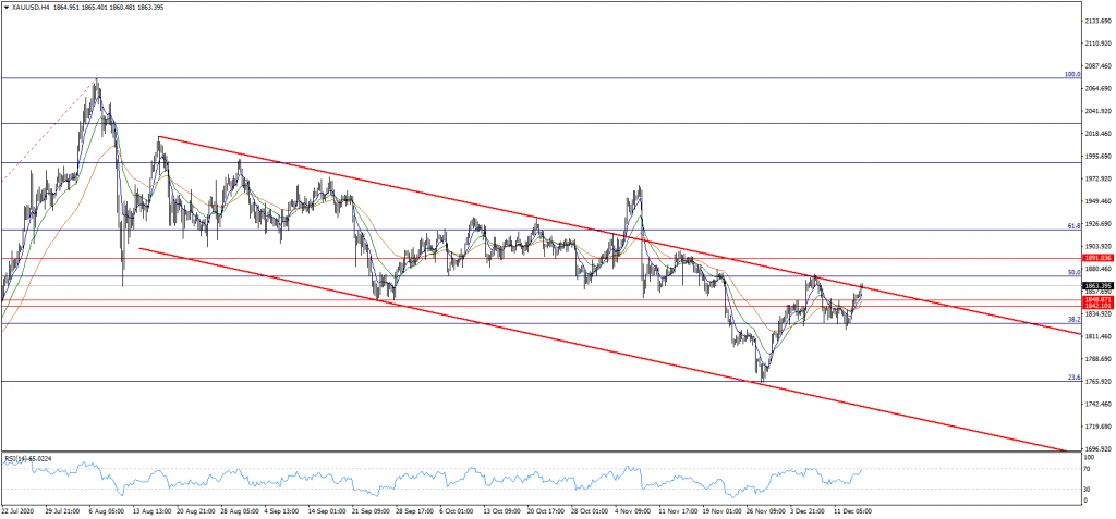ABD’de devam eden mali teşvik görüşmelerine yönelik umutlar yüksek. Demokratlar ve Cumhuriyetçiler arasında yılsonuna kadar anlaşmanın olabileceğine ilişkin beklentilerin güçlendiğini görsek de henüz somut bir adım atılabilmiş değil. Yalnız piyasanın görüşmelerin sonucuna ilişkin umudunu koruduğunu görüyoruz. Bu sayede ons altın fiyatlarında yükseliş hareketlerinin yaşandığını takip ediyoruz. Daha önceki analizlerimizde orta vadeli alçalan kanal formasyonu üst bandı olarak takip ettiğimiz $1860 seviyesinin üzeri test ediliyor. Yükselişin devamı adına bu fiyatlama oldukça önemli. Şayet $1860 üzerinde kalıcılığın sağlanabilmesi ile sarı metalde yükseliş hareketleri hız kazanabilir. Böyle bir durumda $1875 ara direnci ile birlikte $1900 ve $1920 seviyelerini takip etmeye başlayacağız.