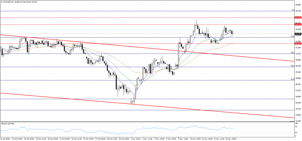 Korona virüsü aşısına yönelik pozitif haber akışı petrol fiyatlarını desteklese de teknik olarak yükselişte yorgunluk belirtileri görüyoruz. Dün Moderna’nın ürettiği aşının %95 oranında başarı sağladığına yönelik açıklaması ile brent petrol fiyatları yeniden 44.80 direncine doğru atak yapsa da bu seviyenin üzerinde kalıcılık sağlayacak güç bulamadı. RSI göstergesini incelediğimizde mevcut direnç seviyesinde negatif uyumsuzluk görmekteyiz. Bu bağlamda dört saatlik grafikleri baz aldığımızda 8 periyotluk üssel ortalama olarak izlediğimiz 43.78 seviyesinin altında fiyatlamaların oluşması gerilemenin 43.30 desteğine kadar sürmesinin önünü açabilir. Yalnız daha net geri çekilmeler için 43.30 desteğinin aşağı yönde geçilmesi gerektiğini düşünüyoruz. Bu sayede ikili tepe formasyonu boyun çizgisi olarak 42.60 ara desteği ile 41.30 seviyesine kadar gevşeme oluşabilir.
