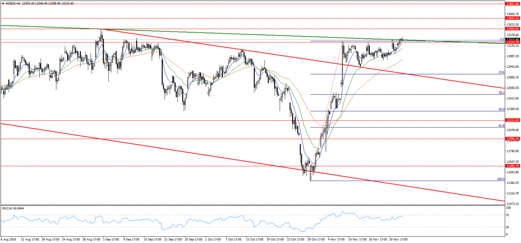 DAX endeksinde yukarı yönde hareketin devam etmesi adına kısa vadede kritik olarak belirlediğimiz 13.308 direncinin üzerinde fiyatlamaların oluştuğunu takip etmekteyiz. Bu seviyenin 13.460 zirvesinden başlayan alçalan trend direnci konumunda bulunduğunu söyleyelim. Dolayısıyla 13.308 seviyesinin aşılması alçalan trendin kırılması anlamına geleceği için yükseliş hareketinin devamı noktasında pozitif bir görüntü oluşturabilir. Bu durumda ilk etapta 13.460 zirvesi yeniden hedef konumuna yerleşecektir. Önümüzdeki günlerde yaşanan yükseliş hareketinin hız kazanması ile 13.460 direncinin de aşıldığını görebilirsek endekste 13.603 ve 13.800 dirençleri yeniden potaya girebilir.