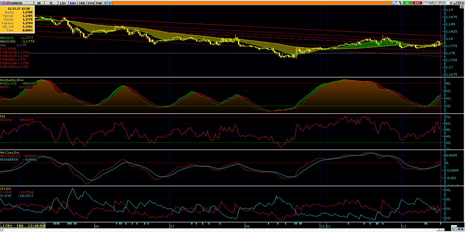 EURUSD: 1,1765 1,1800 band aralığında hareket eden parite gözlerini yarınki Fed faiz kararına dikti. Yatay işlemlerin devamı beklenebilir. Teknik olarak 1,1810 üstünde kalıcılık görmeden olumlu bakış açısı içinde olmayacağımızı belirtmek isteriz. 1,1774 gün için ilk destek seviyemiz. Sonrasında sırasıyla 1,1756 ve 1,1739 diğer desteklerimiz. Gün içi dirençlerimiz 1,1793 ve 1,1810 seviyesinde bulunmaktadır.