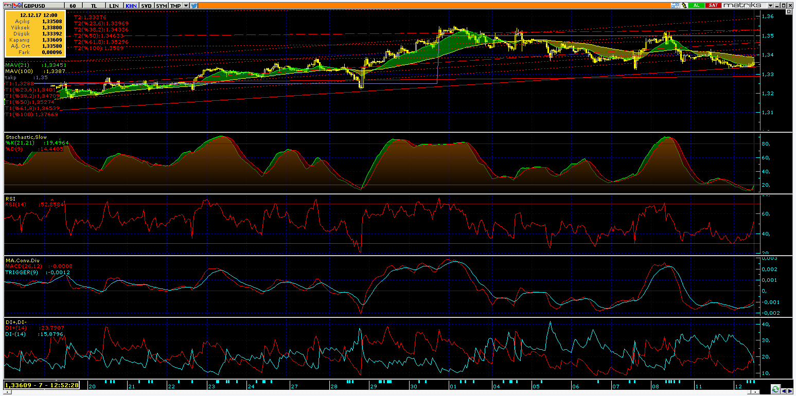 GBPUSD: Sterlin 1,3335 seviyelerinde güç toparlanma çalışması içinde olduğunu görüyoruz. Dar ve sıkışık fiyatlamalar Sterlinde de gözlemlenmekte. Gün içi desteklerimiz 1,3337 ve 1,3288 seviyesinde bulunuyor. 1,3337 gün içi alış denebilecek seviye olarak görünüyor. Olası yükselişlerde direnç seviyelerimiz 1,3387, 1,3401 ve 1,3433 seviyesinden geçmekte.
