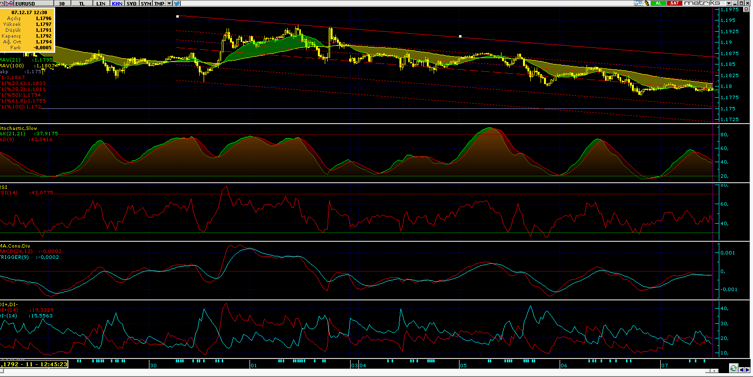 EURUSD: Gün içinde dar ve hacimsiz seyir gözlemlediğimiz paritede 1,1794 pivot etrafında hareket ediyor. Göstergelerin henüz olumlu sinyaller vermediğini görüyoruz. 1,1794 altında destekler 1,1755 ve 1,1720 seviyesinde bulunuyor. Olası yükselişlerde dirençler 1,1811, 1,1833 ve 1,1867 seviyesinde bulunuyor. Saat 19:00 daECB merkez bankası başkanı Mario Draghi açıklamaları sırasında hareketlilik yaşanabilir. Açıklama saatine kadar dar bandda hareketin devamı beklenebilir.