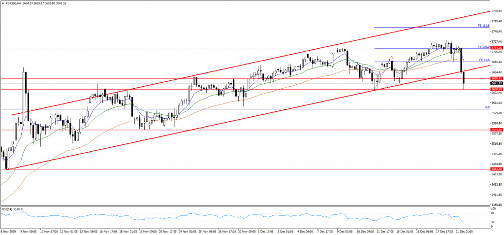 İngiltere’de korona virüsünün mutasyona uğrayarak daha hızlı yayılan bir türünün bulunduğu haberleri sonrası piyasalarda satış baskısının hızlandığını görmekteyiz. Bu sayede ülkeler İngiltere ile ulaşımı kapatmış durumda. Yeni tip virüsün yayılma hızının artması sonucu ülkelerin daha geniş kapanma önlemlerine gitmesi olasılığının belirmesi risk alma iştahına sekte vurdu. Bu durum küresel ölçekte hisse senedi endekslerinde satış baskısının hızlanmasını beraberinde getiriyor. Bu sayede S&P500 endeksinin yükselen kanal formasyonu alt bandı olarak izlediğimiz 3664 desteğini aşağı yönde geçtiğini görmekteyiz. Bununla birlikte gerilemenin hız kazandığını ve 3628 desteğine ulaşıldığını not edelim. Gerilemenin devamı adına bu seviyeyi yakından izliyoruz. Şayet 3628 desteği kırılabilirse geri çekilme hareketinin devam etme ihtimali belirecektir. Böylelikle 3610 ara desteği ile birlikte 3588 seviyesini izlemeye alacağız.
