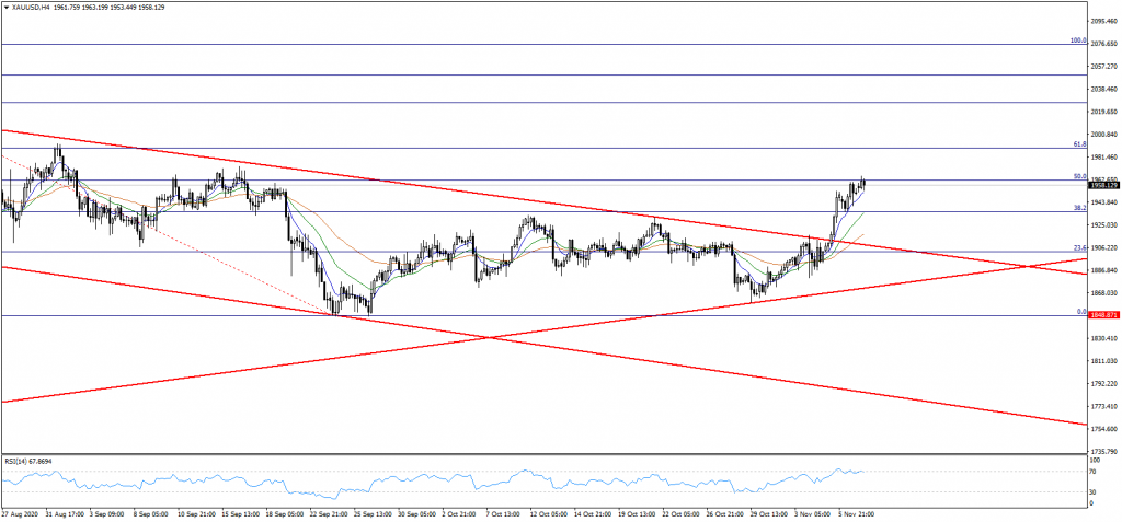 Seçimlere ilişkin gelişmelere paralel olarak ABD dolarının küresel ölçekte sert değer kaybını takip etmiştik. Bu paralelde ons altın fiyatlarının 1965 seviyesinin test edildiğini gördük. Yalnız 1962 direncinin üzerinde kalıcılık henüz sağlanabilmiş değil. Teknik olarak yukarı yönde hareketlerin devamı adına bu seviyenin üzerinde saatlik kapanışların oluşması gerektiğini not edelim. Yalnız dolar endeksinde ( DXY ) bir miktar yukarı yönde hareketlenmenin oluştuğunu ve bu fiyatlamanın ons altında kar satışlarını tetikleme olasılığını güçlendireceğini belirtmekte fayda var. Bu durumda kısa vadede 1952 desteğinin kırılması durumunda 1935 seviyesine doğru geri çekilme gözlemlenebilir.