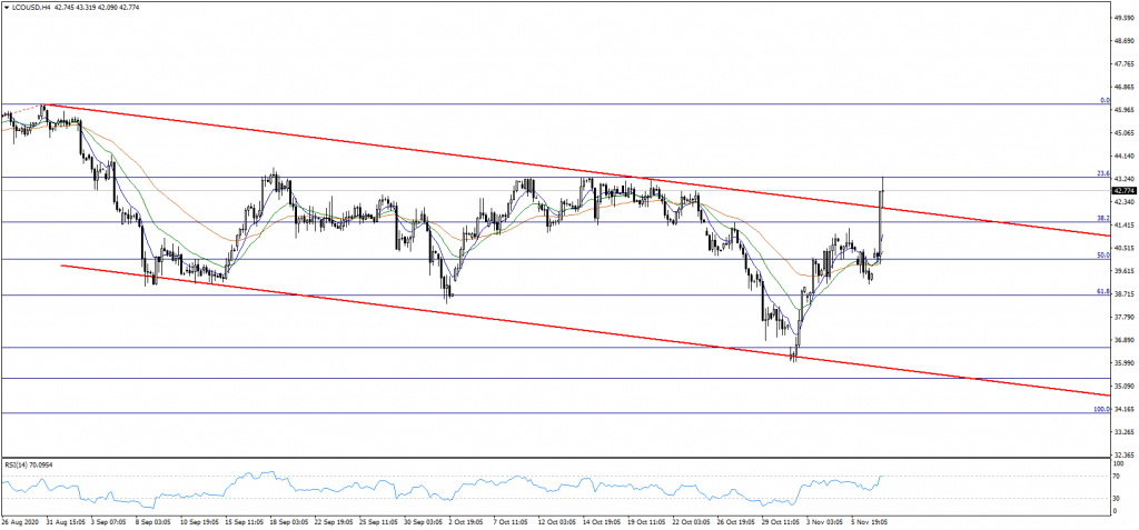BioNTech Pfizer şirketlerinden yapılan açıklamaya göre korona virüsüne yönelik aşının %90’dan fazla etkili olması piyasalarda adeta bahar havası estirdi. Bu sayede riskli varlık statüsünde bulunan enstrümanlarda alımların hız kazandığını görüyoruz. Bu haber özellikle petrol fiyatlarını pozitif olarak etkiliyor. Bu fiyatlama ise oldukça doğal. Korona virüsünde yeni vaka sayılarında şiddetli artış ülkelerin yeni kapanma önlemleri almasına neden oluyor. Bu önlemler ise reel ekonomilerde çarkların yeniden durmasına sebebiyet verebilir algısını güçlü tonda destekliyor. Avrupa tarafında ikili resesyon söylemleri bile mevcut durumda. Dolayısıyla aşıya yönelik olumlu haberlerin korona virüsüne yönelik endişeleri azaltarak ekonomilere yönelik algının güçlenmesini sağlaması adına petrol fiyatlarını destekliyor. Bu gelişmenin paralelinde teknik olarak;