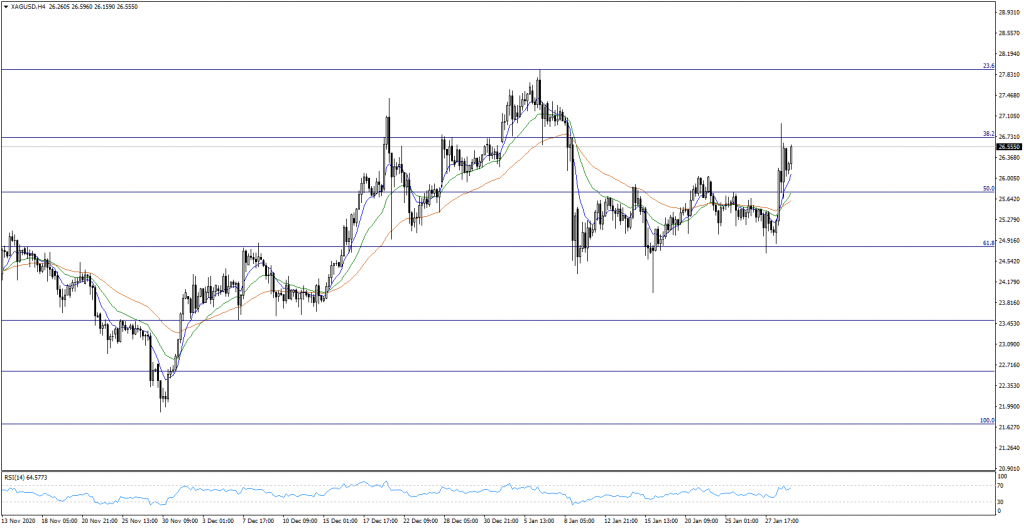 Gümüş fiyatlarında son iki günde yükseliş hareketleri oldukça dikkat çekici… Yabancı basında konuşulan en önemli konu ise internet sitesi Reddit’te yatırımcıların gümüş fiyatlarına yönelik alım yönünde tartışmada bulunması olarak belirtiliyor. Bu sebebin fiyatlamaları ne derece etkilediği kesin olarak bilinmese de yukarı yönde fiyatlamaların hız kazandığı açık. Bu sayede $27.00 seviyesine yaklaşıldığını gözlemlemiştik. Teknik olarak yükselişin devamı adına $26.70 seviyesinin üzerinde kalıcılığın sağlanması gerektiğini düşünmekteyiz. Şimdilik bu seviyenin aşağısında işlemlerin devam ettiğini görüyoruz. Yalnız bu seviyesinin üzerinde kalıcılığın oluşmasını sağlayacak fiyatlamalarda $27.40 ve $27.90 dirençlerini takip ediyor olacağız.
