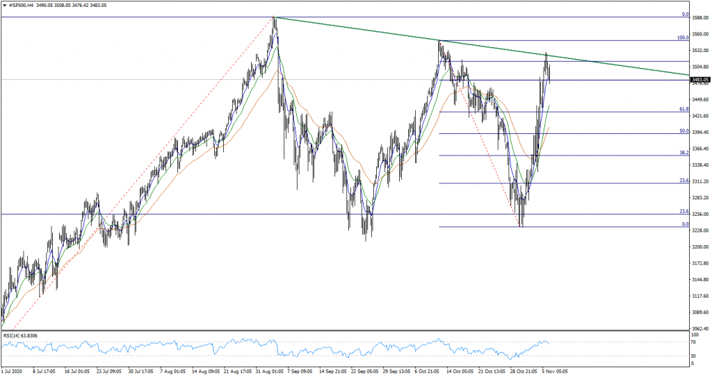 ABD seçimlerinde Biden’ın başkanlığı kazanacağı ve senatonun Cumhuriyetçilerin kontrolünde kalmaya devam edeceği beklentilerinin kuvvetli olması endekslere güçlü alımlar getirmişti. Özellikle Biden’ın Georgia’da Trump’ın önüne geçmesi oldukça önemli bir haber. Bu sayede S&P500 endeksinin önemli gördüğümüz 3525 alçalan trend direncine ulaştığını takip ettik. Yalnız bu seviyenin üzerinde kalıcılığın sağlanamaması sonucu bir miktar satış baskısının oluştuğunu görüyoruz. Bu sayede fiyatların 3482 desteğine ulaştığını görüyoruz. Endekste geri çekilmenin devam etmesi noktasında ilk etapta 3482 desteğinin kırılması gerektiğini düşünüyoruz. Bu seviyenin aşağı yönde geçilmesi durumunda satış baskısının ivme kazanma olasılığı kuvvetlenecektir. Böylelikle 3450 ara destek seviyesi ile birlikte 3428 desteğine kadar geri çekilme hız kazanabilir.