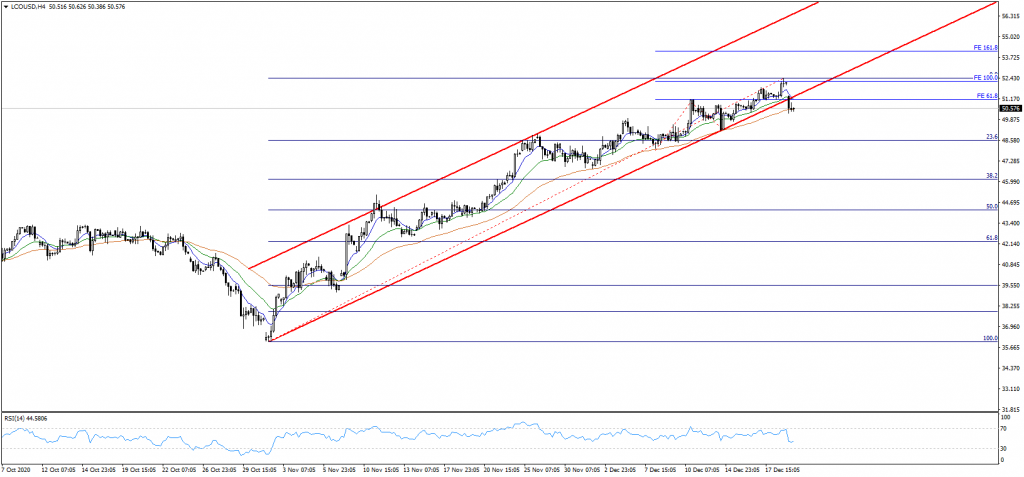 Petrol fiyatları, İngiltere’de keşfedilen Covid-19 mutasyonunun virüsün bulaşmasını hızlandırabileceği ve daha fazla kilitlenmeye yol açabileceği endişesiyle satış baskısı altında… Bu sayede $51.00 seviyesinin aşağı yönde geçildiğini görmekteyiz. Bu seviye $26.00 seviyesinden başlayan yükselen kanal formasyonu alt bandı olması nedeniyle bir hayli önemliydi. Mevcut fiyatlamalara bakarak yükselen kanalın aşağı yönde kırıldığını söyleyebiliriz. Teknik olarak dört saatlik grafikleri baz aldığımızda 50 periyotluk üssel ortalamanın geçtiği $50.50 desteğinin hemen üzerinde fiyatlamaları oluştuğunu izlemekteyiz. Geri çekilmenin devamı adına bu seviyenin aşağı yönde geçilmesi gerekiyor. Böyle bir durumda $49.20 – $48.50 bölgesine doğru aşağı yönde hareket devam edebilir.